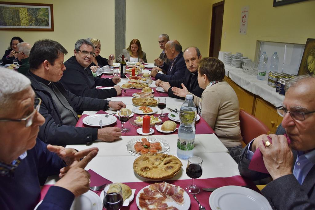 El acto consistió en una cena que se celebró en los locales parroquiales de la Iglesia nueva de Santa Cruz, y en el que participaron otros responsables, trabajadores y voluntarios de esta Cáritas y otras del entorno, así como las personas que actualmente requieren el servicio y las ayudas que ofrece la parroquia. Todos juntos compartieron un menú elaborado por usuarios y colaboradores de la entidad.